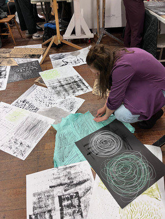 By moving between materials — ink, charcoal, collage — and by reworking existing drawings, participants are able to return to the same ideas from different angles, rather than abandoning them in favour of something new. One of the most noticeable shifts is how long people are willing to stay with a drawing. Through layering, rubbing back, and repeated adjustment, drawings are allowed to remain unresolved for longer than expected and carry ghost lines and traces of previous decisions. . This extended engagement makes space for uncertainty, and with it a quieter confidence not through mastery, but through familiarity and return.